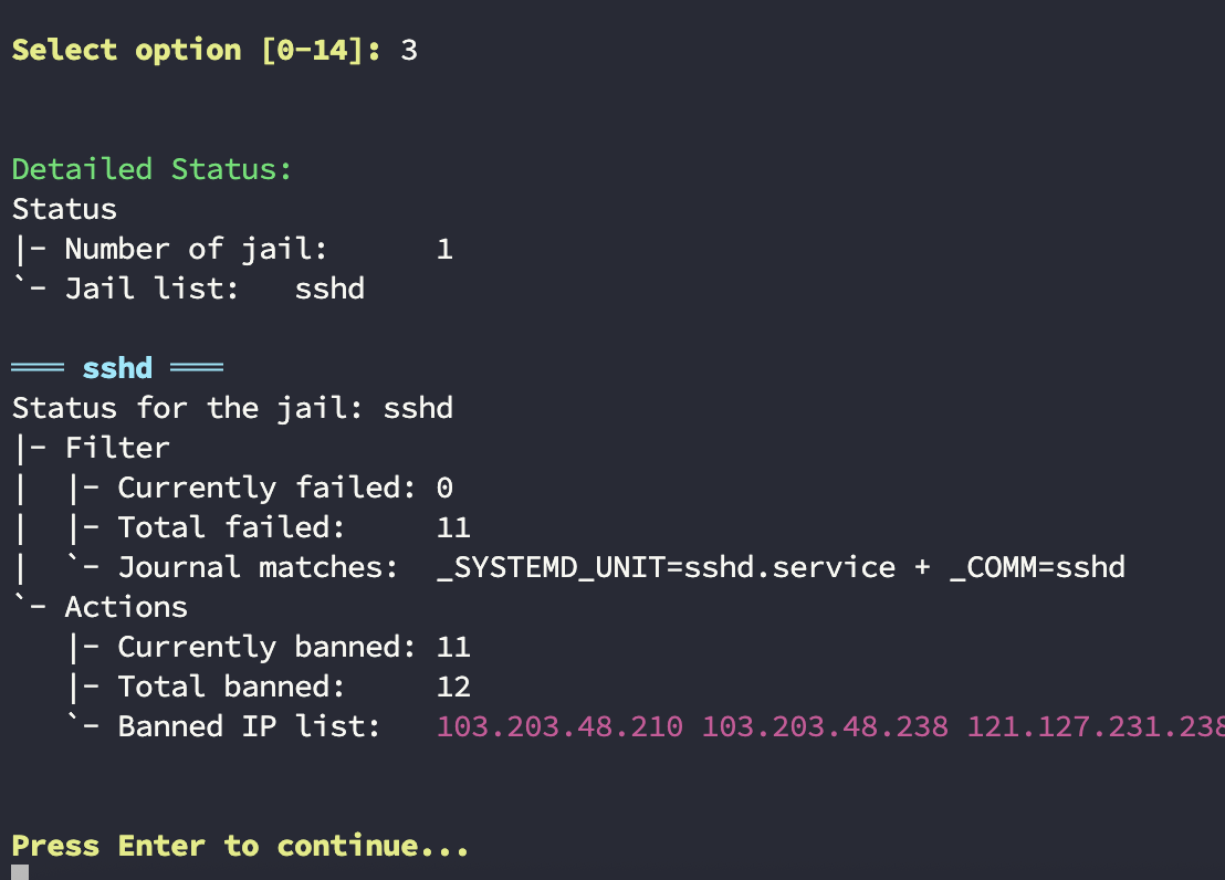 f2b banned # Показать заблокированные IP