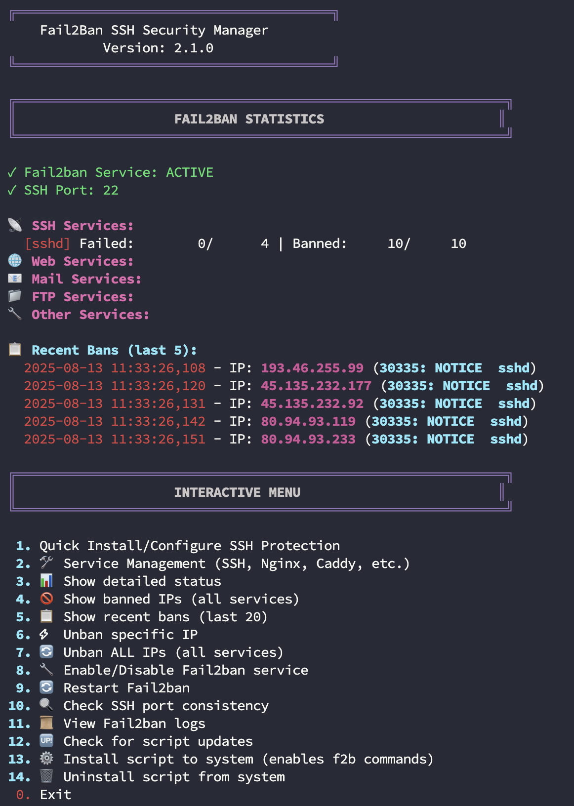 Fail2ban Manager - Быстрая установка и управление