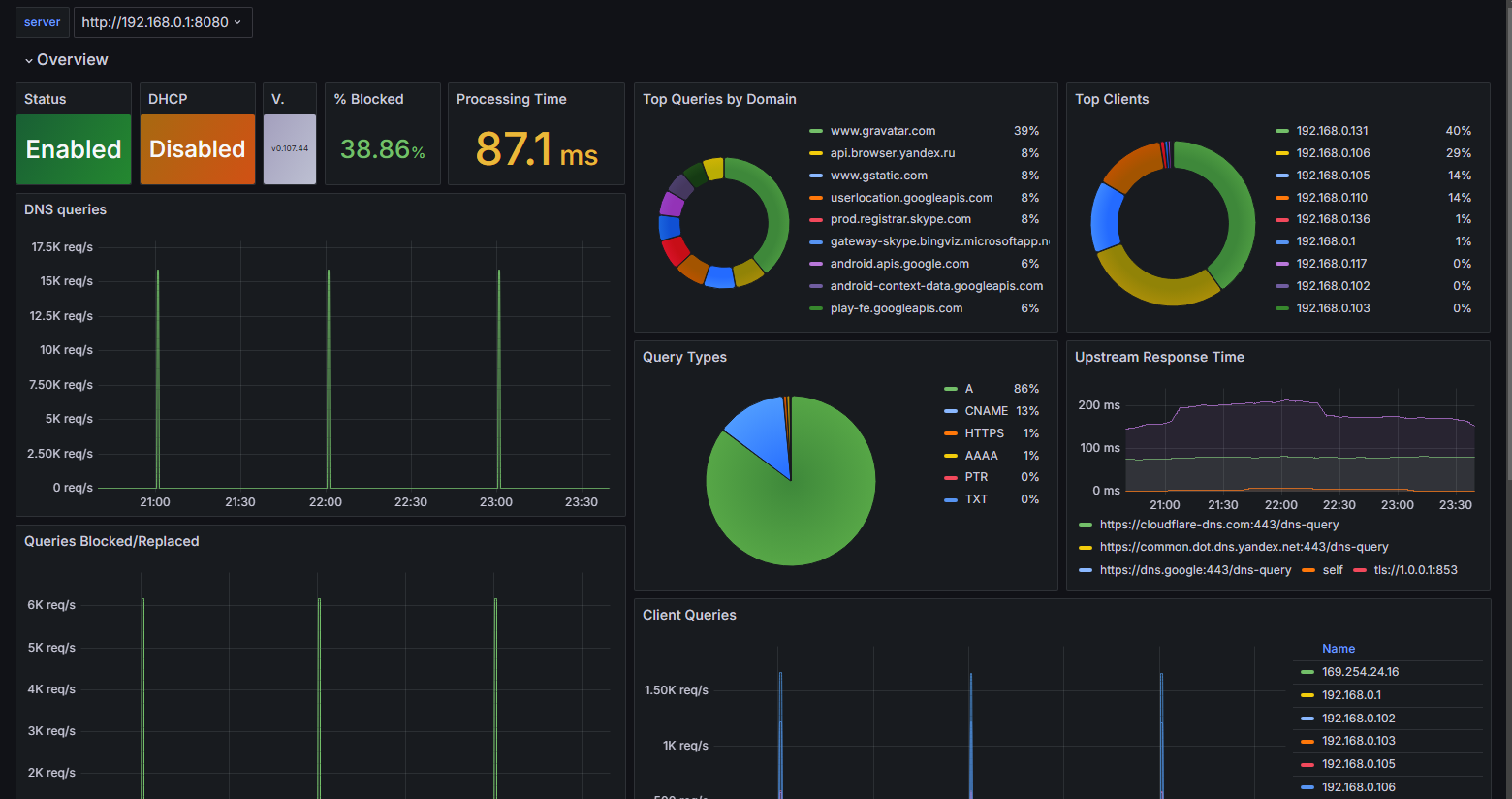 Описание дашборда на официальном сайте: AdGuard Home Exporter | Grafana Labs